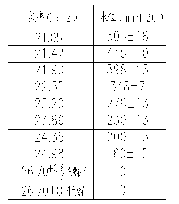 耐久开闭性能 加额定电压,以 20 次/分钟的速度交替,加最高传感器水位及最低传感器水位的压力,使其膜片往复进行 50000 次循环动作,实验前后高水位的水位变化满足±15mmH3O。