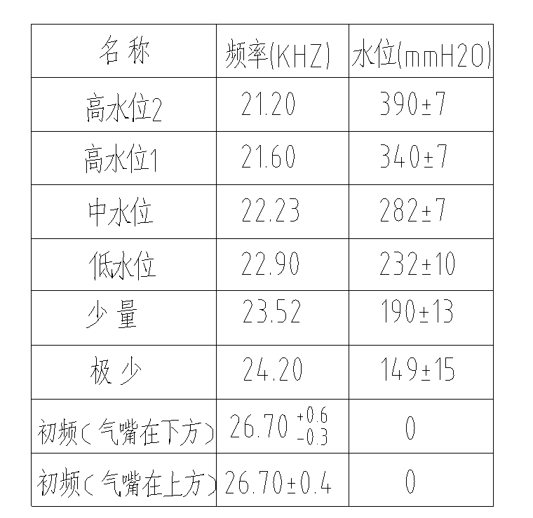 | 耐久开闭性能 | 加额定电压,以 20 次/分钟的速度交替,加最高传感器水位及最低传感器水位的压力,使其膜片往复进行 50000 次循环动作,实验前后高水位的水位变化满足±15mmH3O。 | |